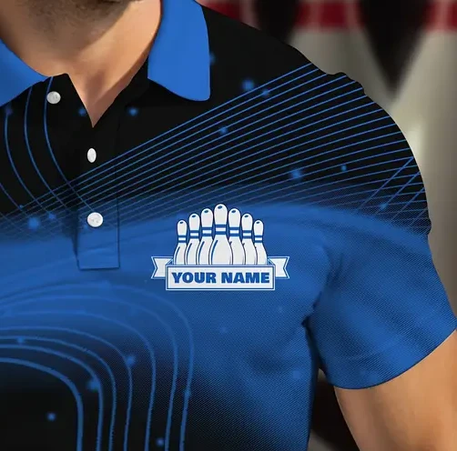 Personalisierbares Herren-Poloshirt - Einzigartiges Bowling-Design mit grünem und schwarzem Thema, bequem, atmungsaktiv, schnell trocknendes Material, kurze Ärmel mit Knopfverschluss - Perfekt für lässige Outfits für dich oder dein Bowlingteam