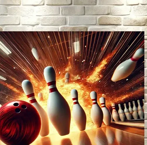 Feurige Explosion von Pins und Ball, Ideal für deine Bowlingbahn als Deko